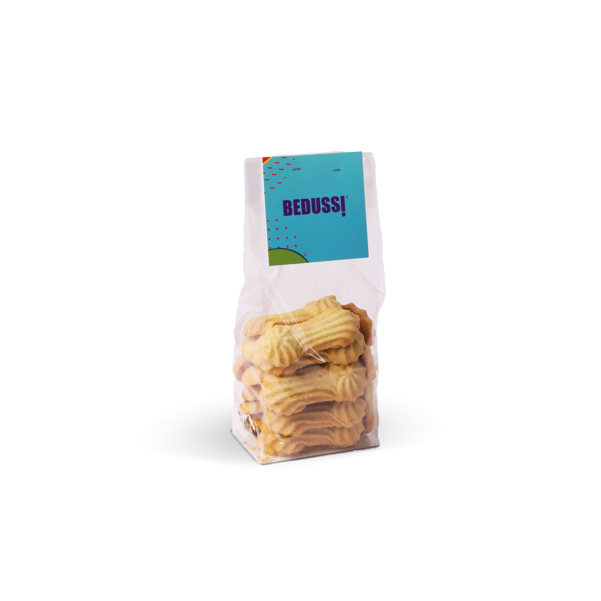 Farina di grano tenero tipo 00, burro, zucchero vanigliato fine, albume d'uovo pastorizzato, sale iodato, vanigla Bourbon del Madagascar.