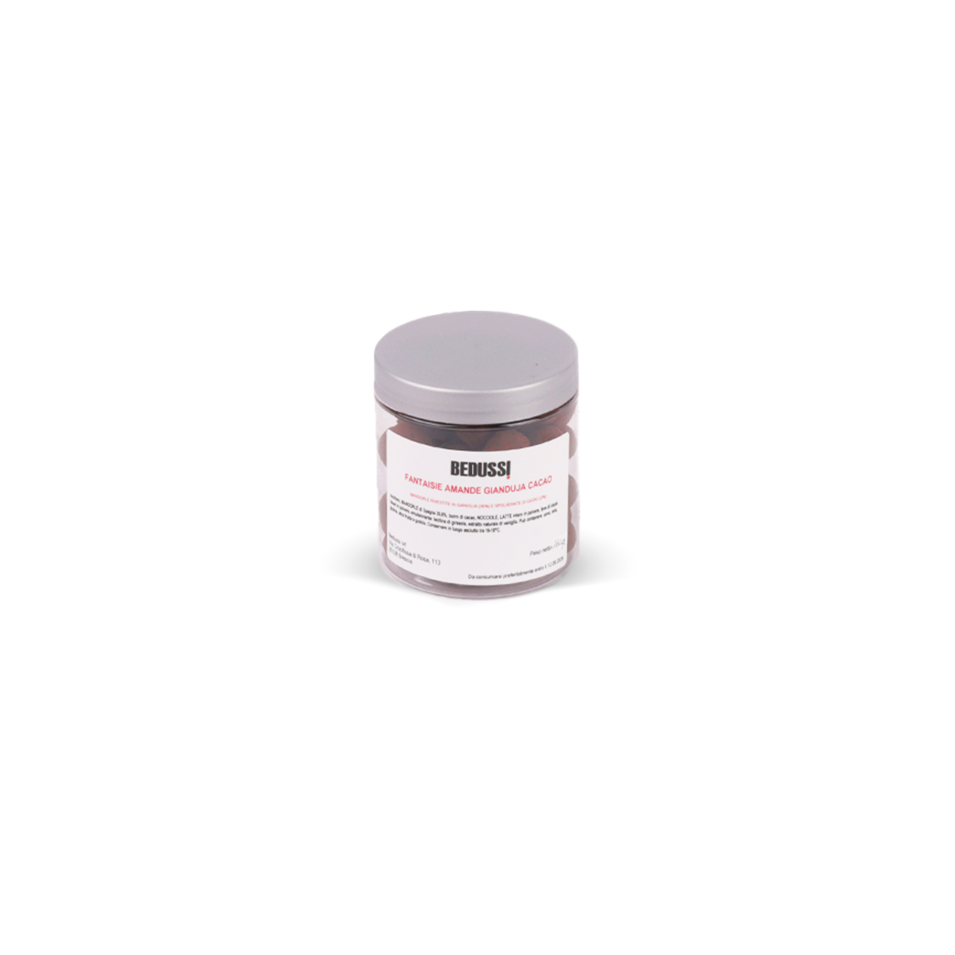 Zucchero, mandorle di Spagna, burro di cacao, nocciole, latte intero in polvere, fave di cacao, cacao in polvere, emulsionante: lecitina di girasole, estratto naturale di vaniglia.